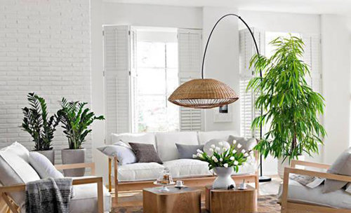 二是观叶植物的色彩,形态和气质要与房间功能相协调。客厅布置应力求典雅古朴,美观大方,使人感到丰盈美满,盛情迎客。因此,要选择庄重幽雅的观叶植物,墙角放置苏铁,棕竹等大中形盆栽植物,或席地而放,或置于花架上,可具有四季常青的效果;沙发旁宜选用较大的散尾葵,鱼尾葵等,人坐在沙发上犹如置身于大自然怀抱之中。